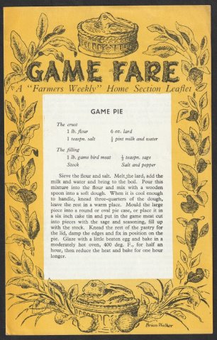WEEKLY. Game Cookery c.1960. [15970] A Farmers Weekly Home Section Leaflet