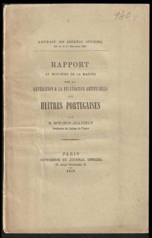 des Huitres Portugaises. 1882. [2038] Imprimerie du Journal Officiel, Paris,