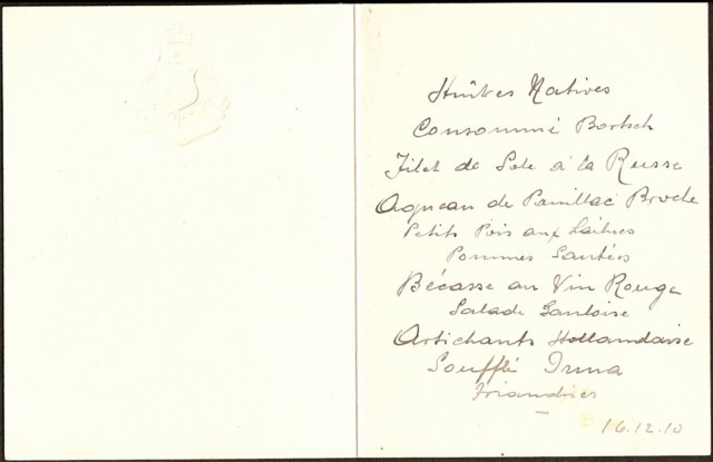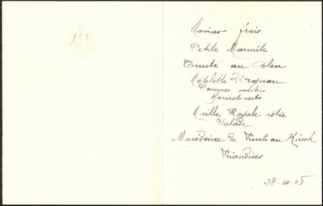 else condition good. Private dinner in the Savoy Hotel, London. Hand-written menu