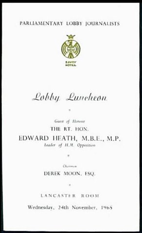 inches with Savoy Hotel in gilt. Parliamentary Lobby Journalists Lobby Luncheon.