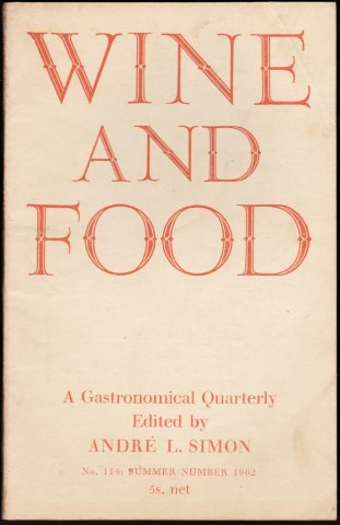 A.L. (ed.) Wine and Food. A Gastronomical Quarterly. No.114. Summer Number, 1962.