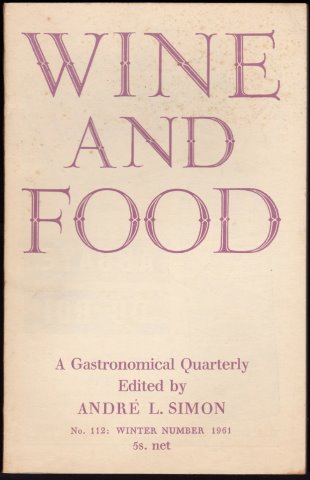 A.L. (ed.) Wine and Food. A Gastronomical Quarterly. No.112. Winter Number, 1961.