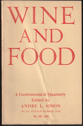A.L. (ed.) Wine and Food. A Gastronomical Quarterly. No.64. Winter Number, 1949.
